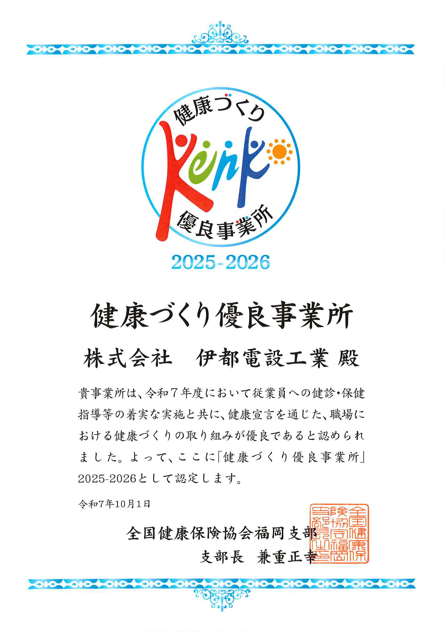 今年度も引き続き、2025年度の「健康づくり優良事業所」に認定されました。